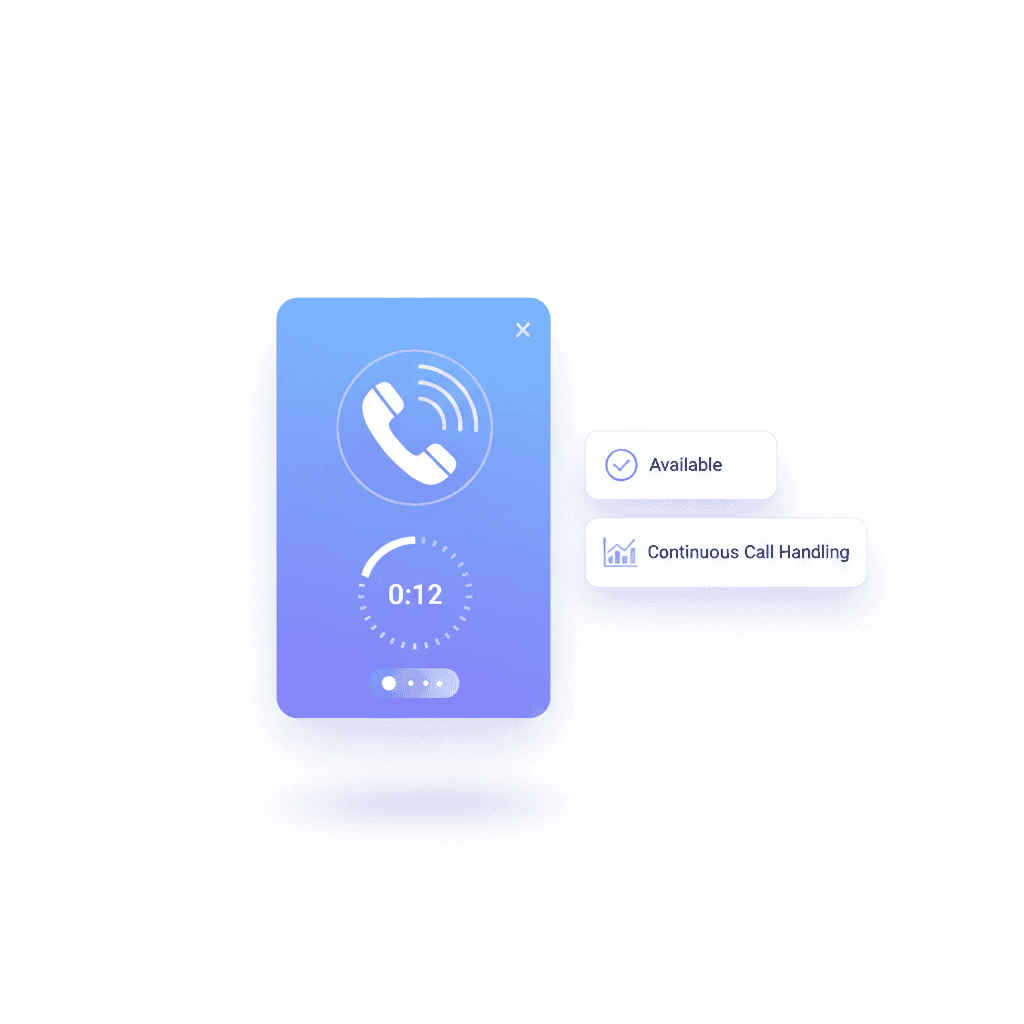 Every call answered. Every time." Body: "24/7 coverage including nights, weekends, holidays, and overflow during peak hours. No voicemail. No hold music. Handles simultaneous callers. Multilingual support.